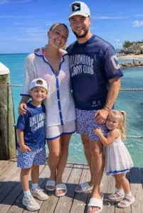 In the image, the couple is dressed in coordinating blue and white outfits, with their “kids” posed beside them. “My heart wasn’t ready for this,” she captioned the post.