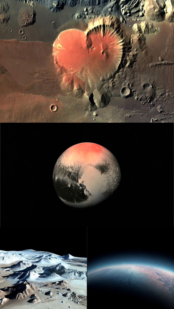 - Tombaugh Regio, the iconic heart-shaped bright region, is a vast nitrogen-ice glacier spanning ~1,000 miles, slowly convecting and resurfacing itself.