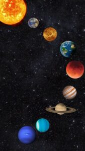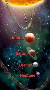Journey Through the Solar System: A vibrant illustration of the Sun and its eight orbiting planets Mercury, Venus, Earth, Mars, Jupiter, Saturn, Uranus, and Neptune showcasing their elliptical paths and cosmic beauty in space.”